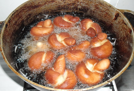 Étape 5: Faites chauffer l’huile dans une marmite ou friteuse et y verser la pâte tout en évitant que les morceaux se collent.
