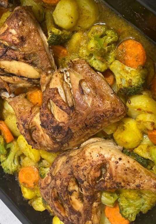 Les cuisses de poulet rôties, croustillantes à l'extérieur et juteuses à l'intérieur, sont un plat réconfortant idéal pour les repas en famille. Accompagnées de petits légumes colorés, cette recette saura ravir les papilles de vos convives et apporter une touche de convivialité à votre table.