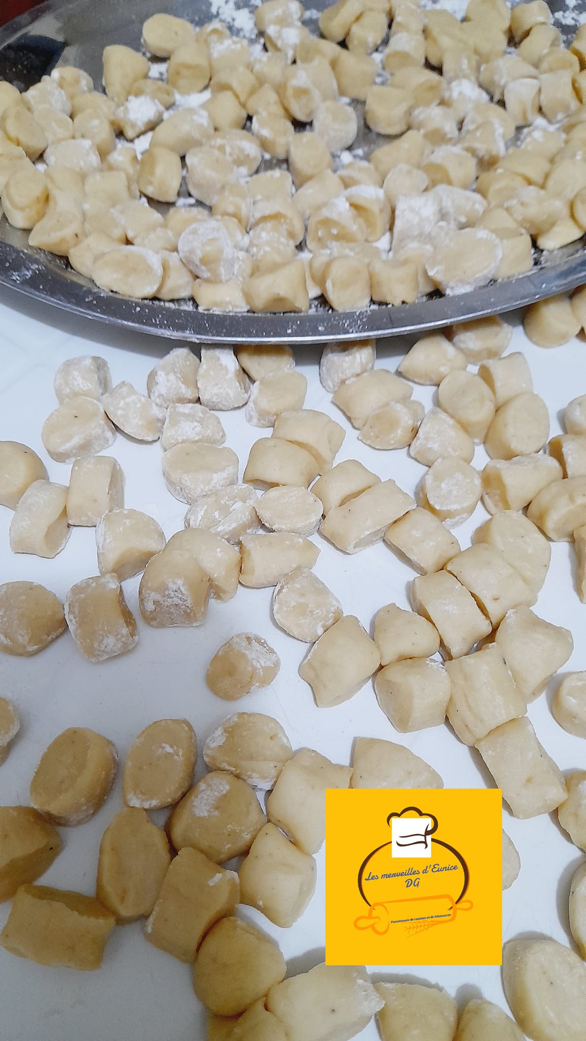 - Faites de petits pâtons, ensuite des bâtonnets et enfin de petits cubes.