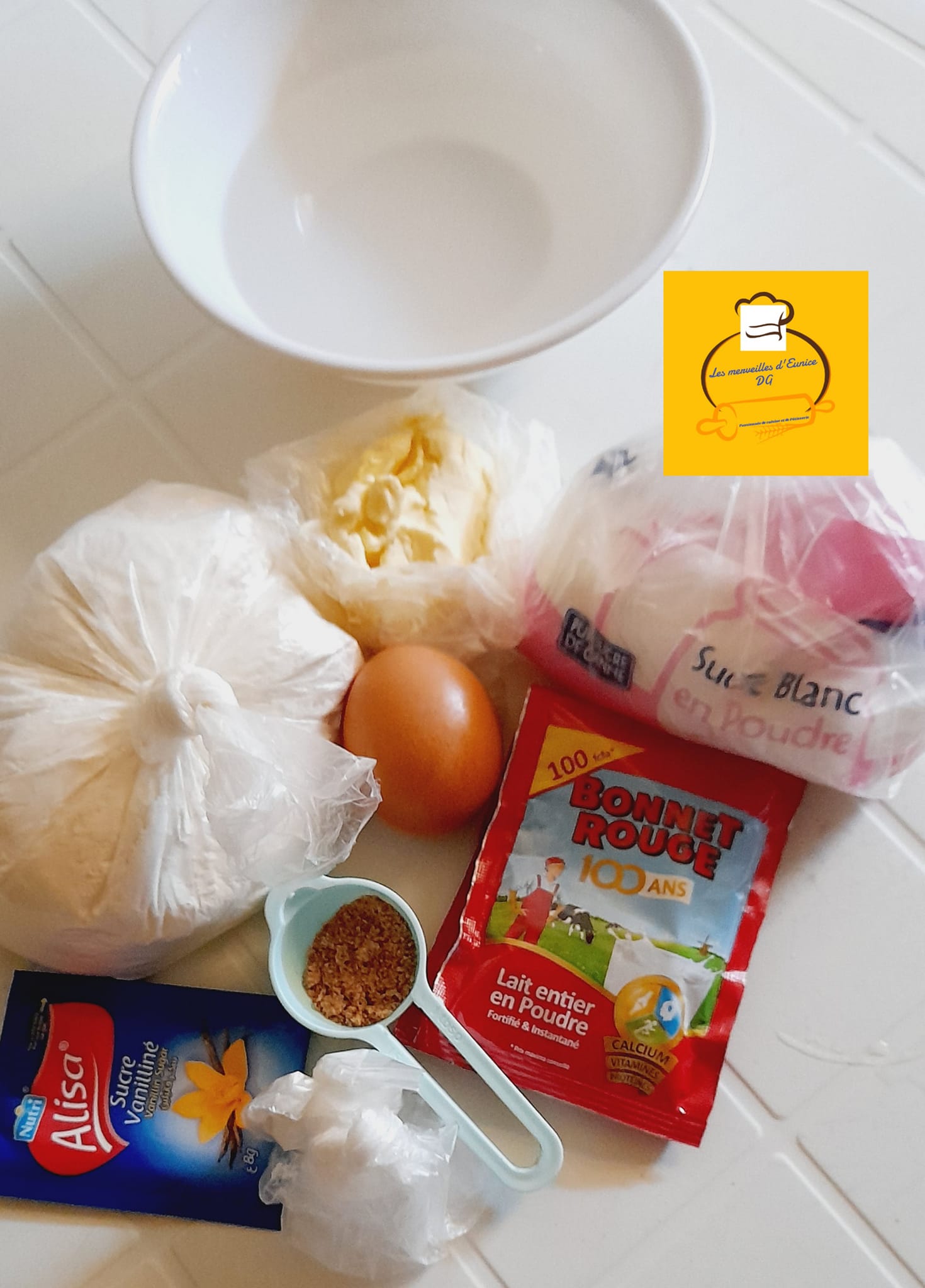 - Mélangez farine, lait, sucre, œuf, sucre vanillé , beurre, noix de muscade, levure chimique de façon homogène.
