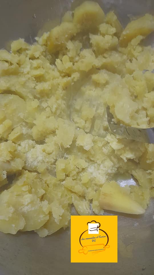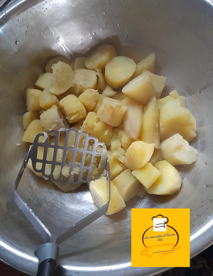 - Ăpluchez vos patates douces, faites cuire avec un peu de sel et Ă©crasez Ă l’aide d’un presse purĂ©e.