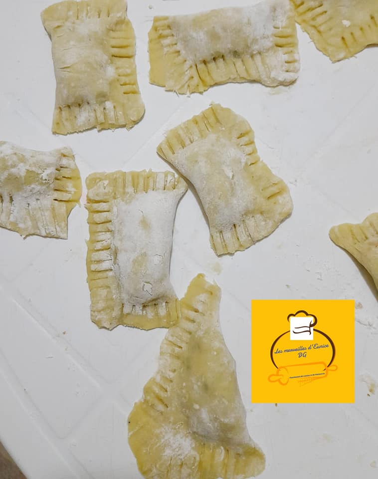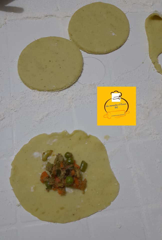 - Servez vous d’un emporte piĂšce pour faire des ronds, mettre la farce au milieu et refermez les bords.