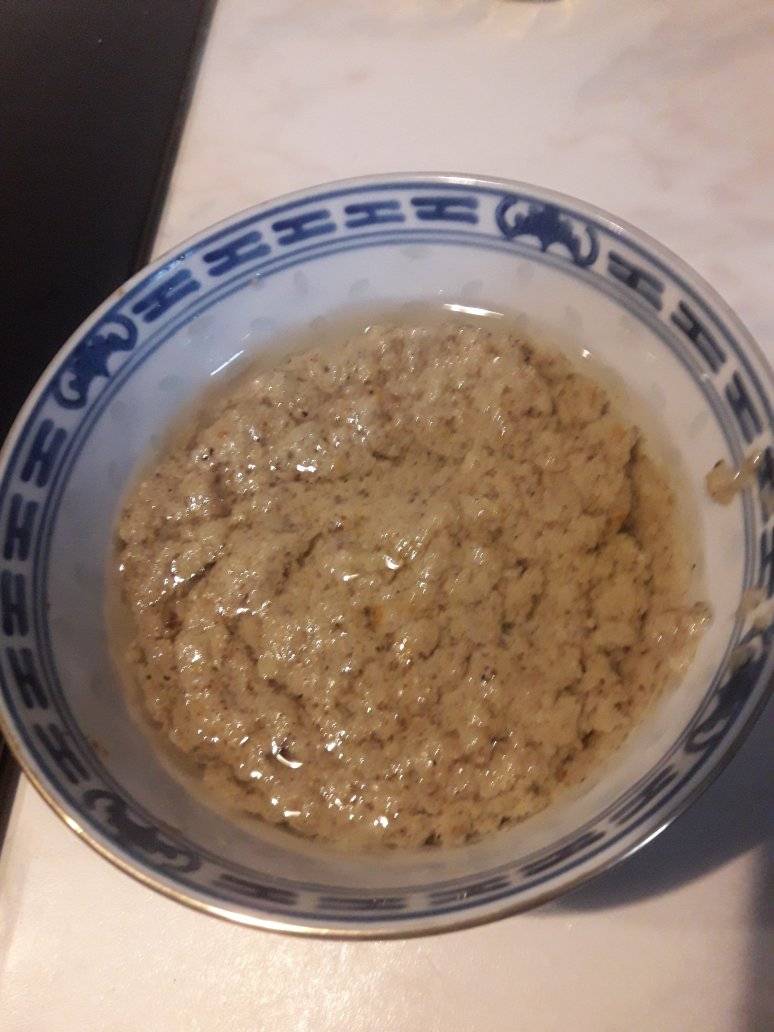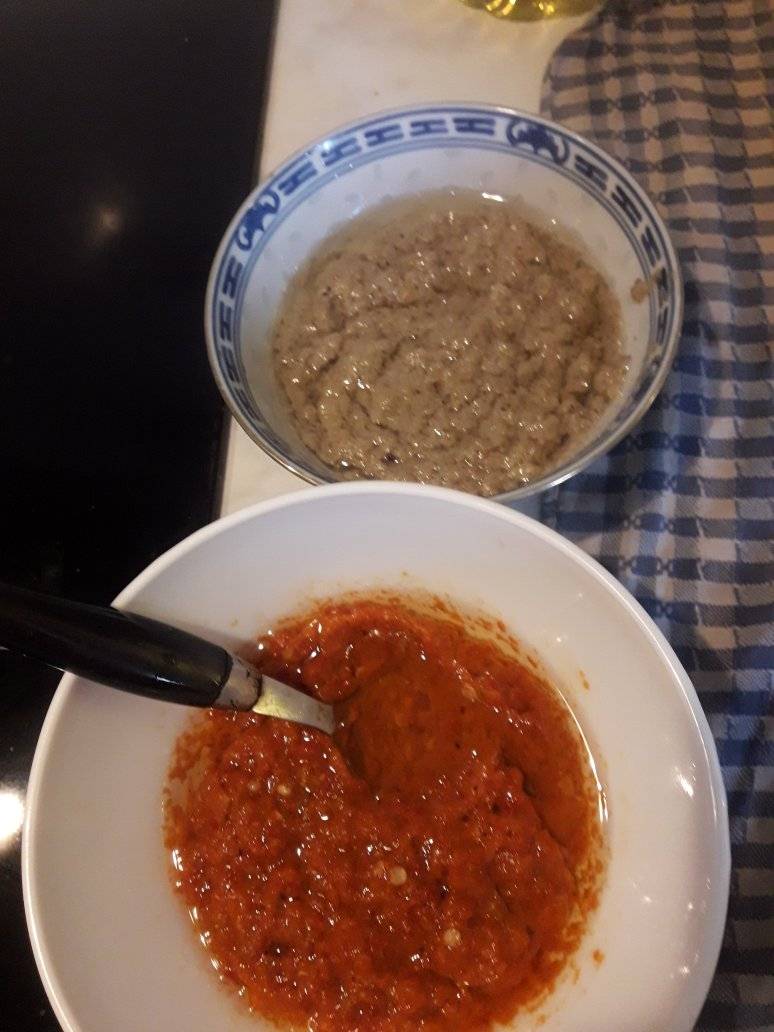 - Écraser oignon ail et blanc de poireau : ajouter aux épices, + un peu d’huile, cube bien mélanger.