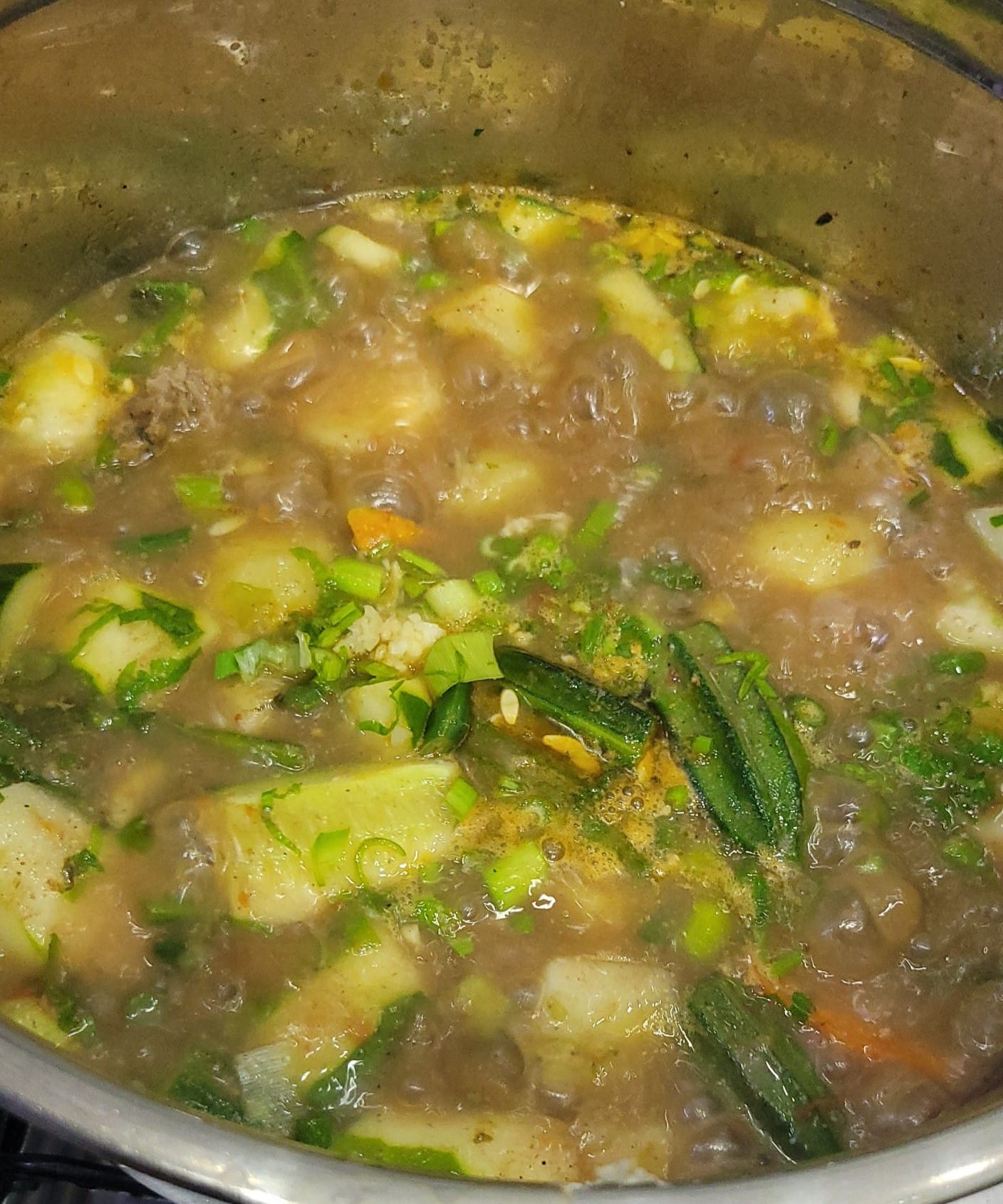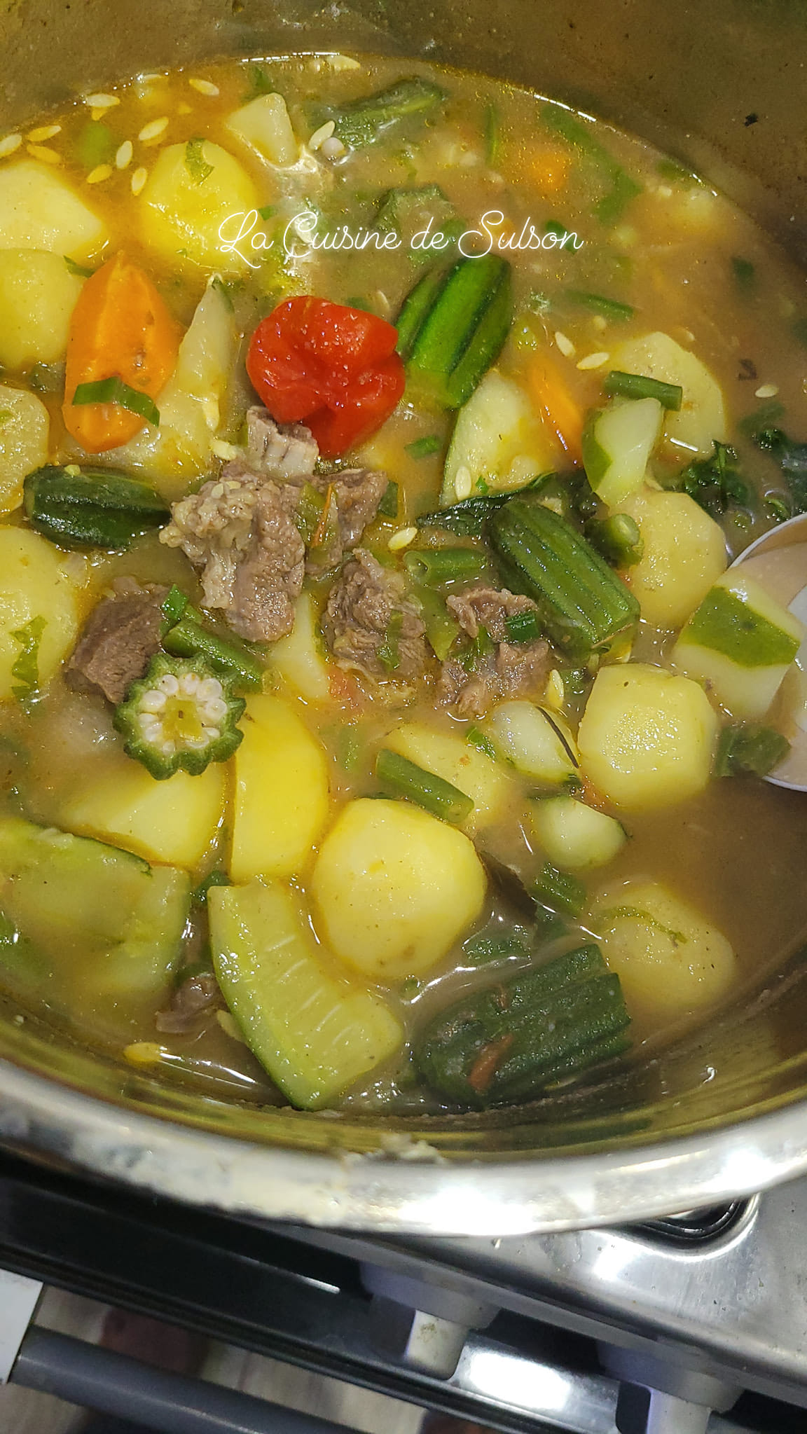 Bouillon de pommes🥔aux légumes avec soupçon huile de palme,farine maïs+gombo | Cuisine de Chez Nous