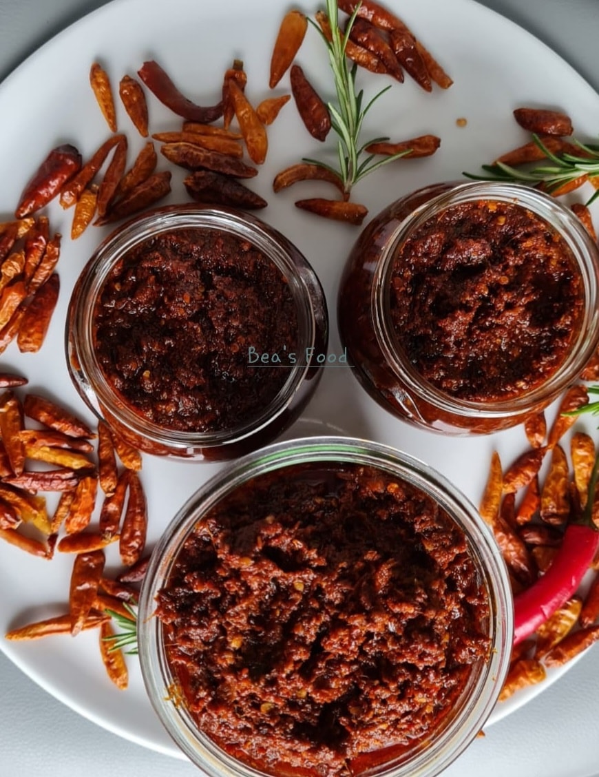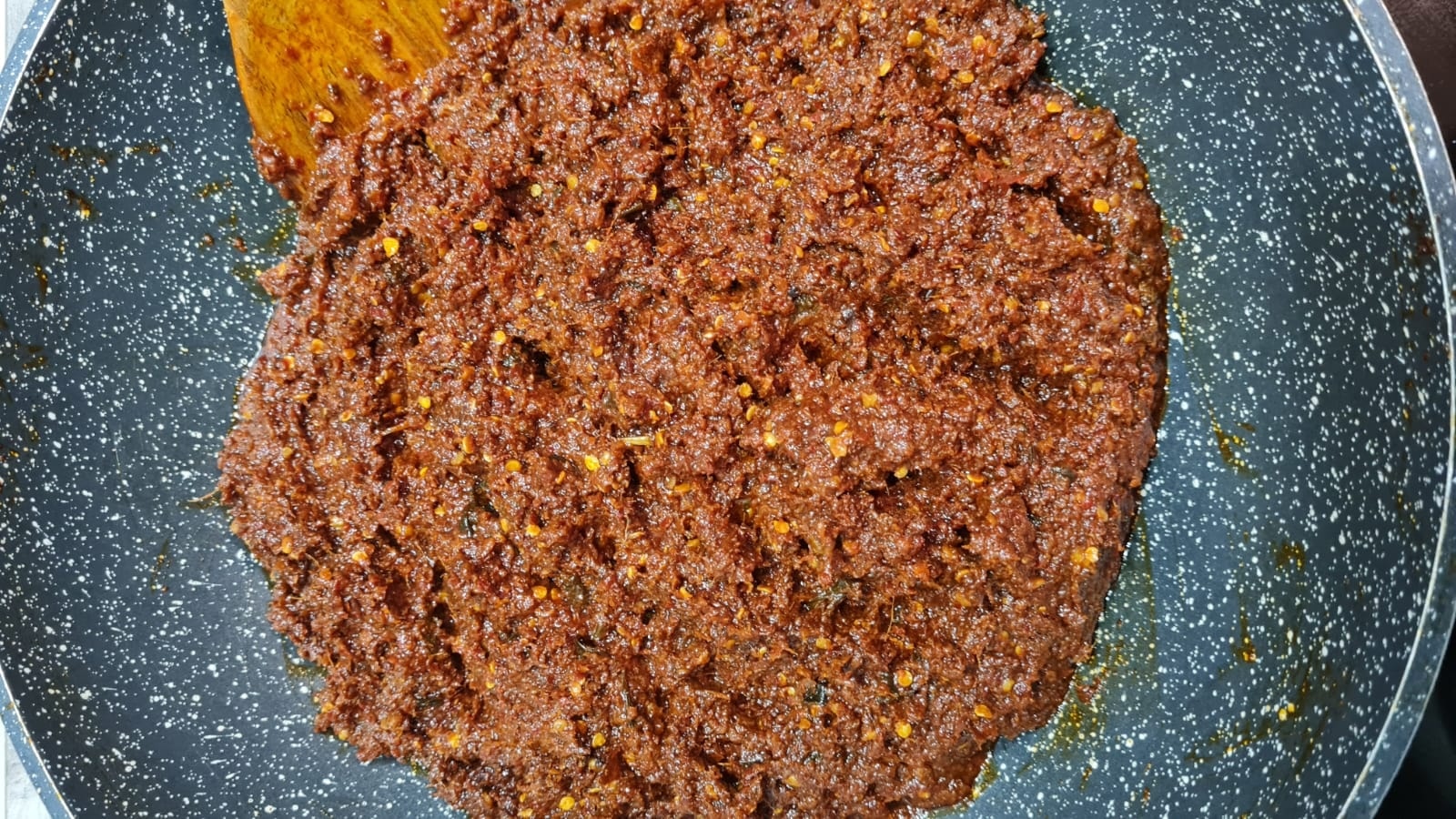 - Faire chauffer l’huile et y renverser la pâte de piment obtenue.