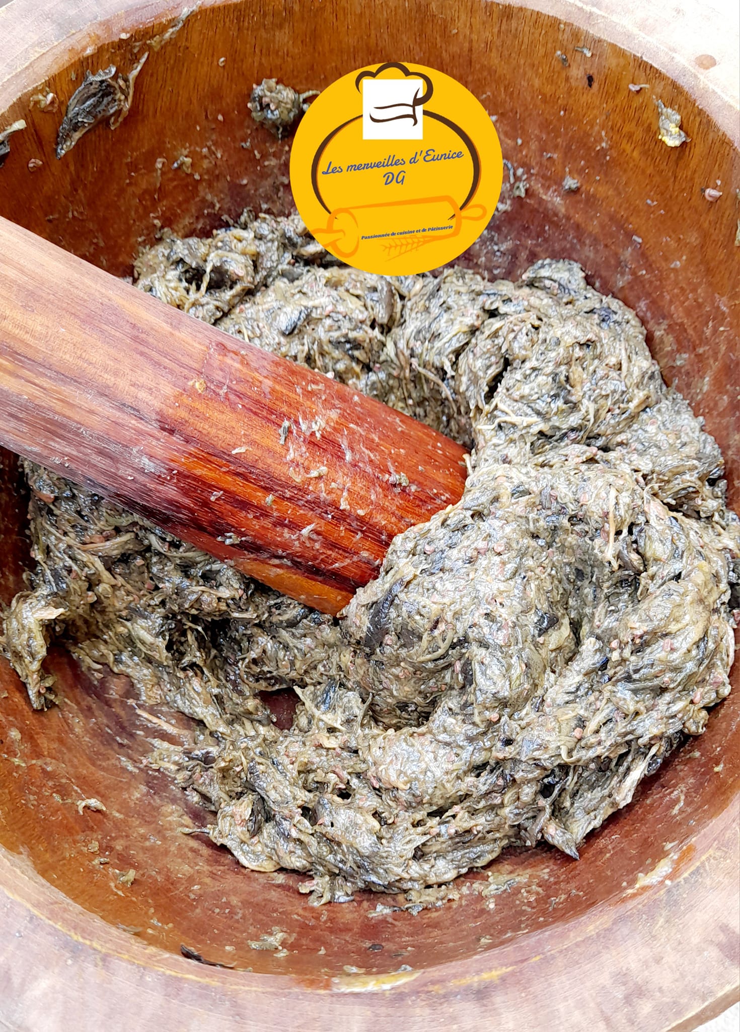 - Mettre la pĂąte de gombo sec pilĂ© dans la sauce, ajoutez la mixture des lĂ©gumes, un peu d’eau si nĂ©cessaire, les crevettes sĂ©chĂ©es, la poudre de mangne sec, un oignon en dĂ©, sel ou cube d’assaisonnement.