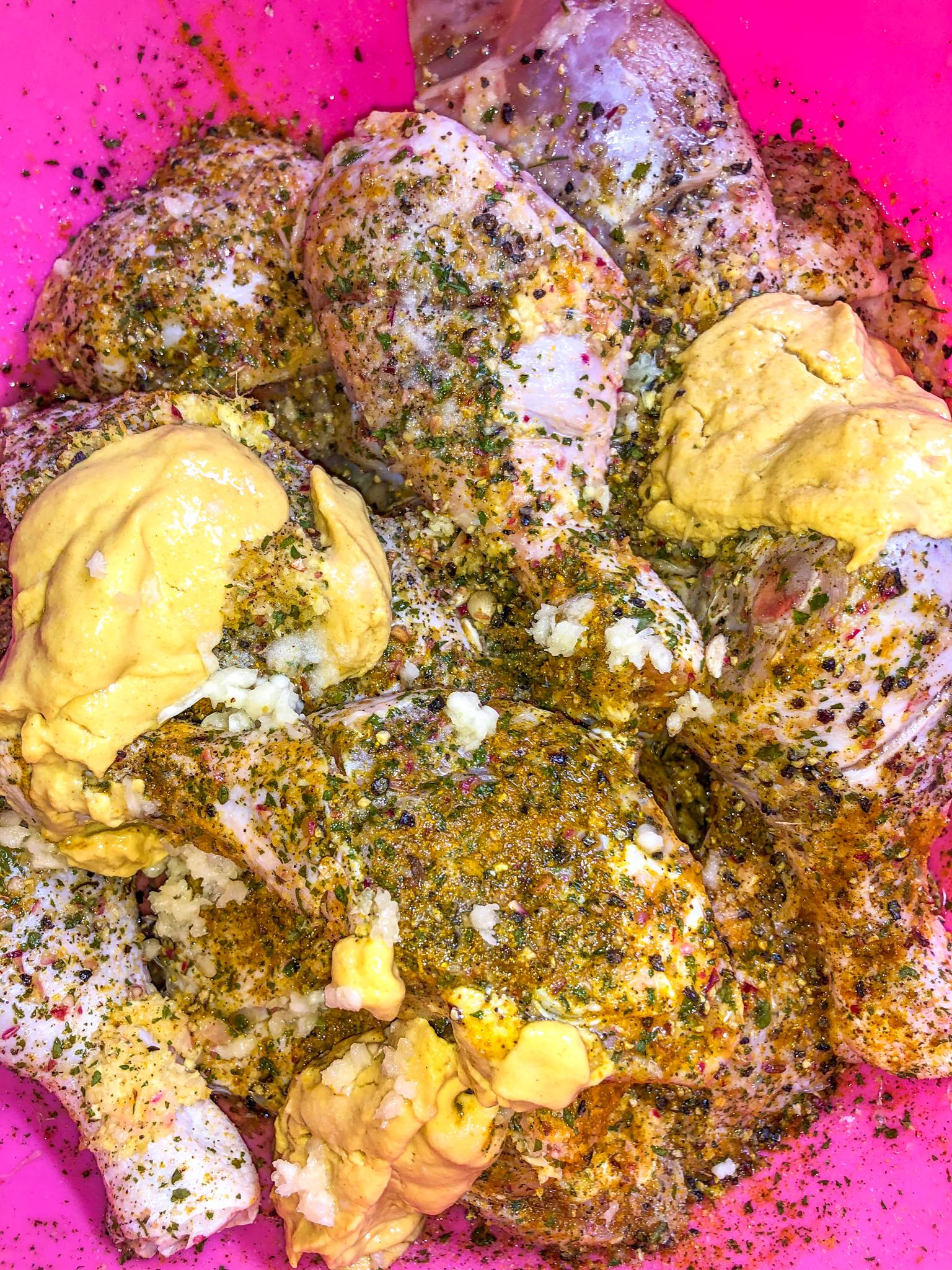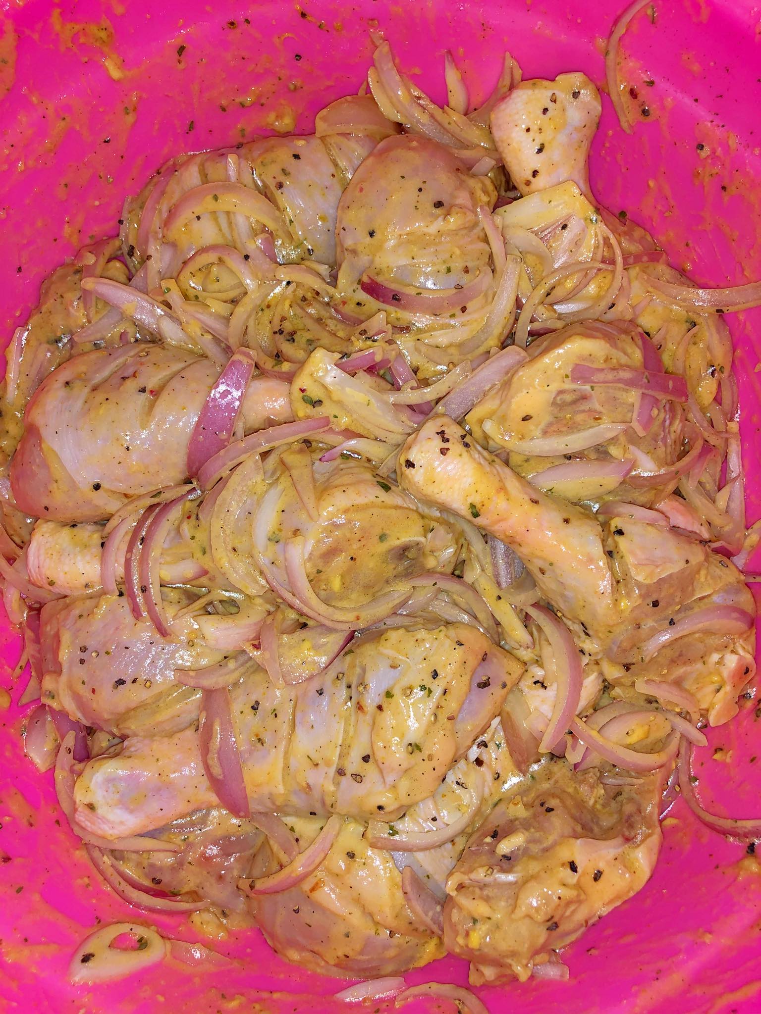 - Mettez les dans une bassine ; ajoutez l’huile , persil , poivre noir , curry , moutarde , gingembre écrasé , ail écrasé , les oignons émincés et enfin le jus de vos citrons .