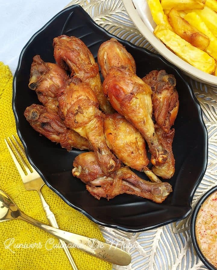 Servez le poulet avec une sauce piquante, des frites maison et une salade fraîche. Vous pouvez également l'accompagner de pain de maïs pour un repas complet.