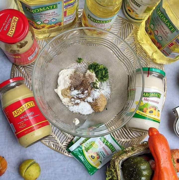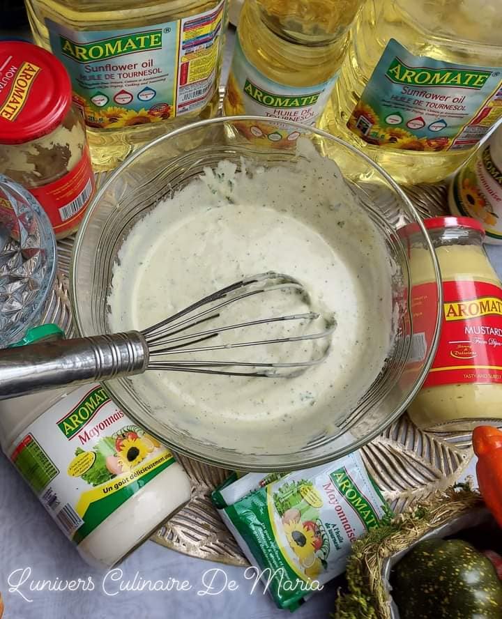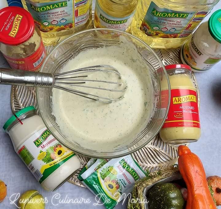 - Dans un bol, mélangez la mayonnaise , la moutarde , le lait et le jus de citron jusqu’à obtenir une sauce homogène.