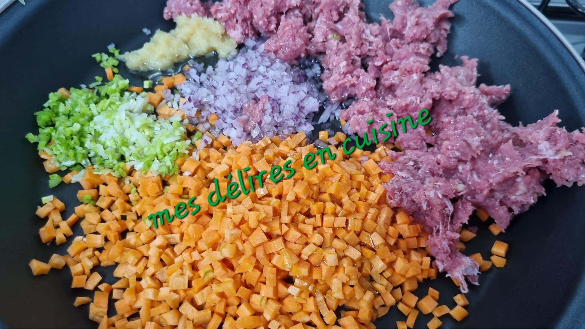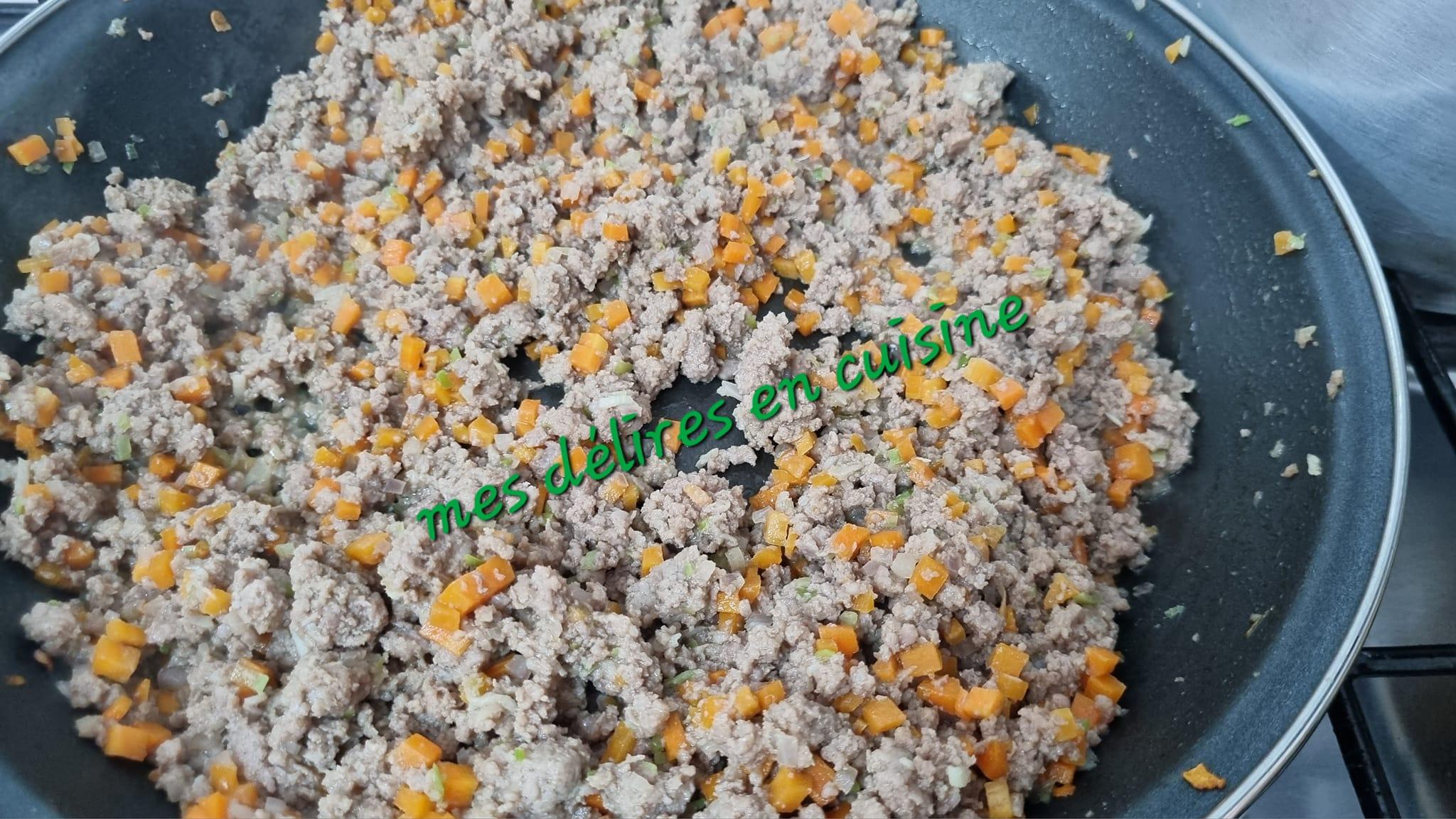 - Incorporez la viande hachée, assaisonnez de sel et de poivre, et faites cuire jusqu’à ce qu’elle soit bien dorée.