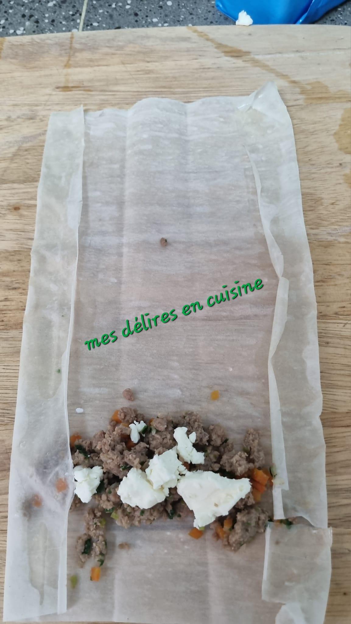 - Repliez les côtés de la feuille de brick pour envelopper la farce, puis roulez-la pour former un cigare ou un triangle, selon votre préférence.