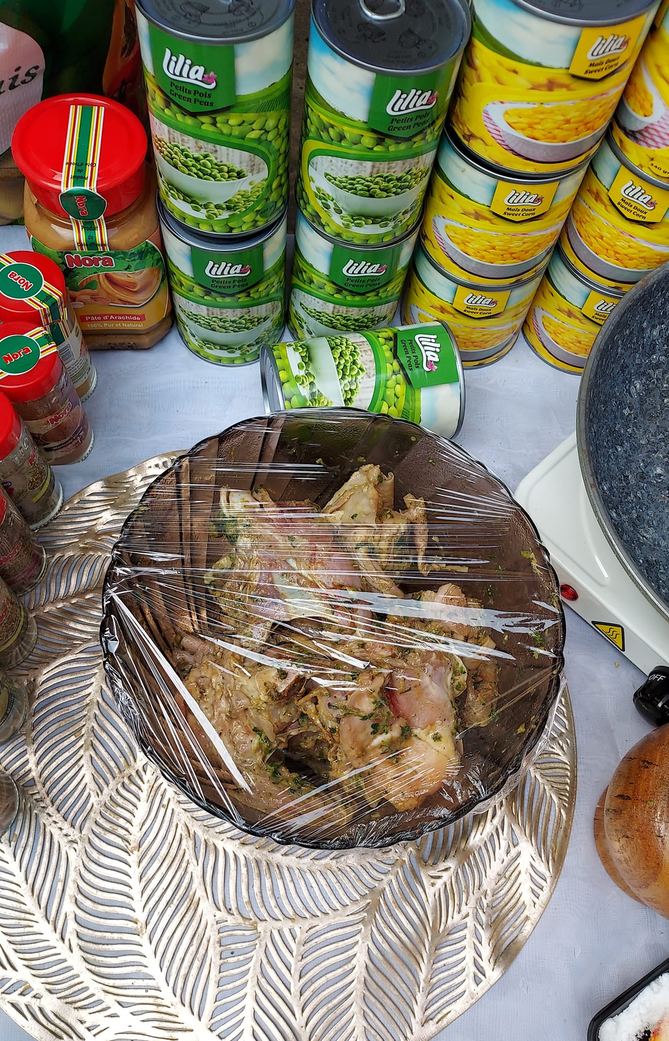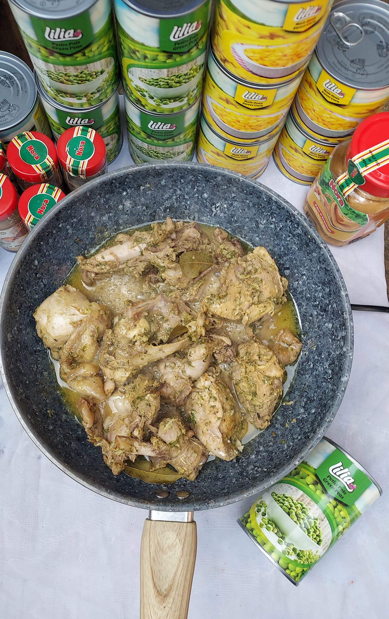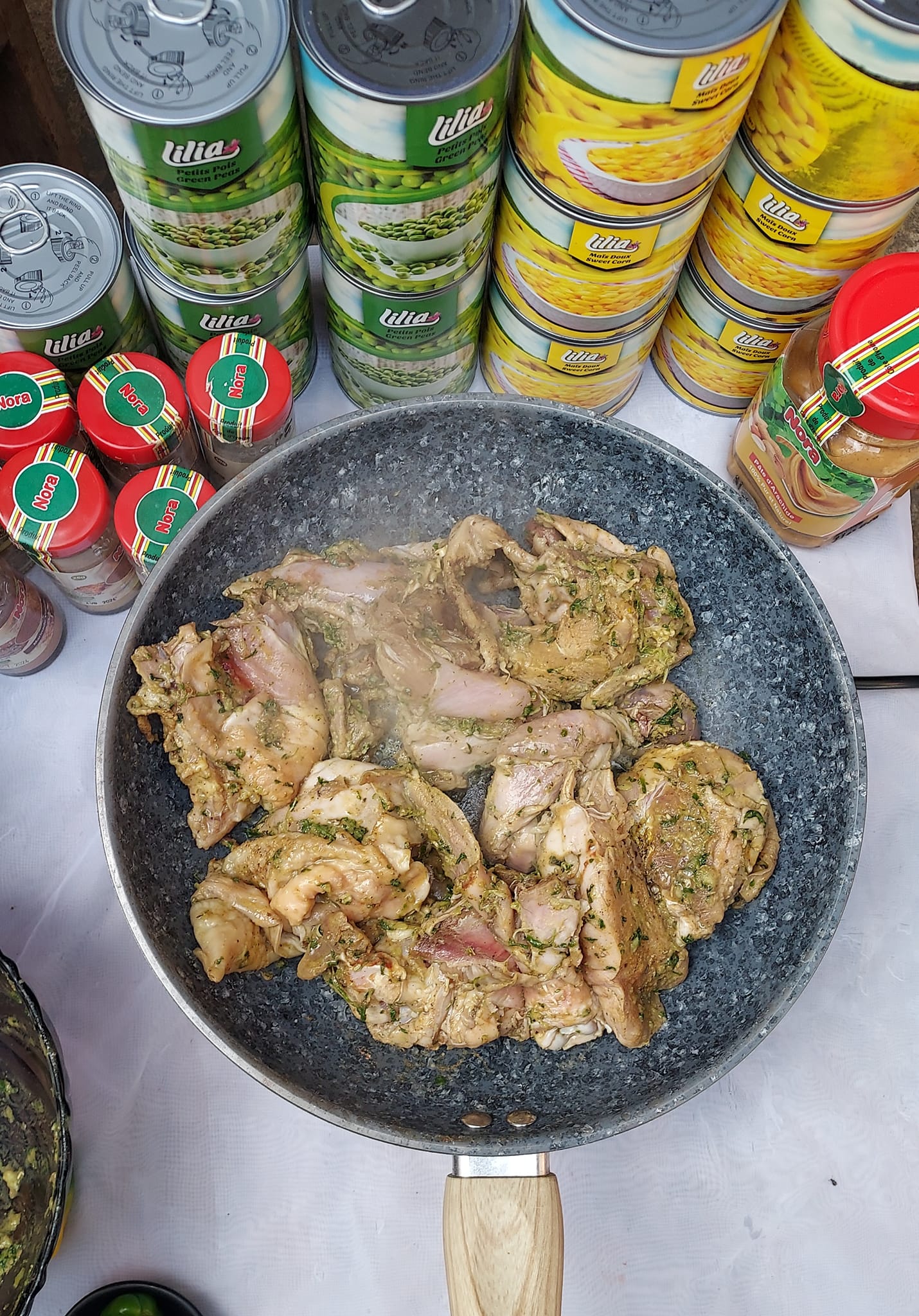 - Après la marinade, placez les morceaux de poulet dans une marmite et faites-les mijoter à feu moyen pendant quelques minutes, en remuant de temps en temps.