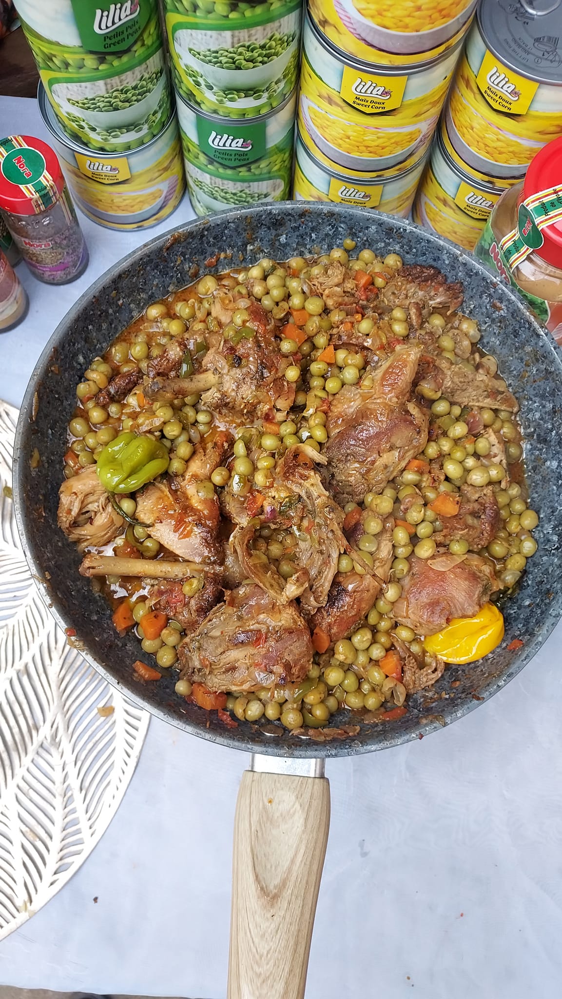 - Ajoutez les petits pois égouttés, mélangez bien et laissez cuire encore quelques minutes jusqu’à ce que tout soit bien chaud.