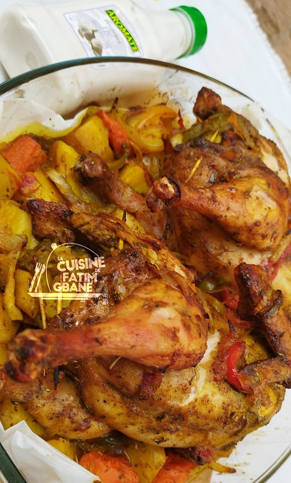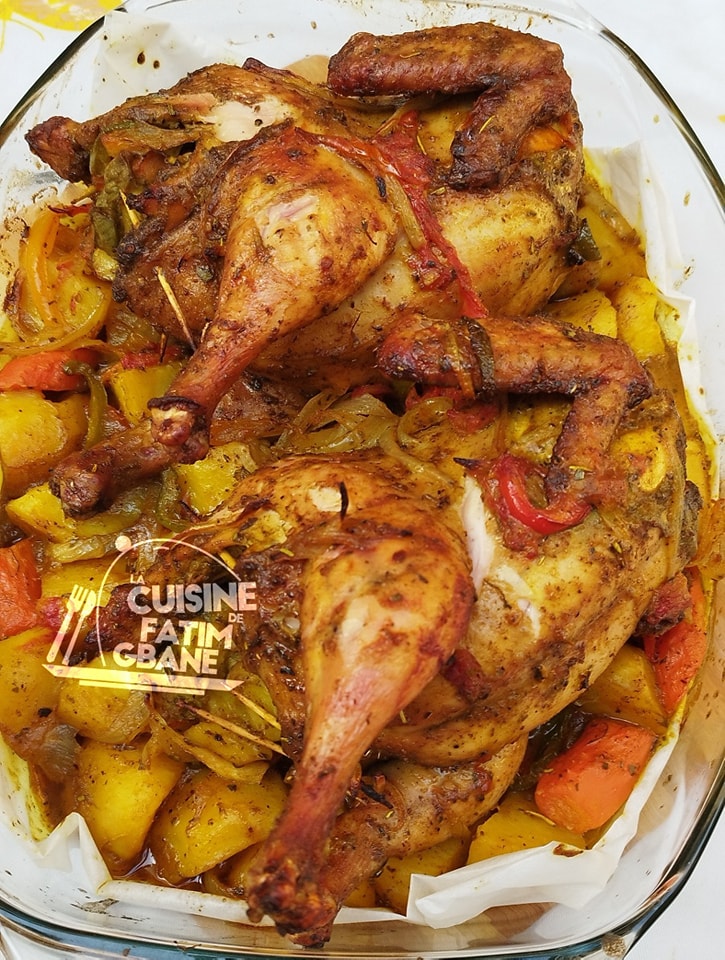 Découvrez cette savoureuse recette de poulet rôti au four, farci de macédoine de légumes et accompagné de pommes de terre et carottes fondantes. Un plat convivial qui ravira vos convives !