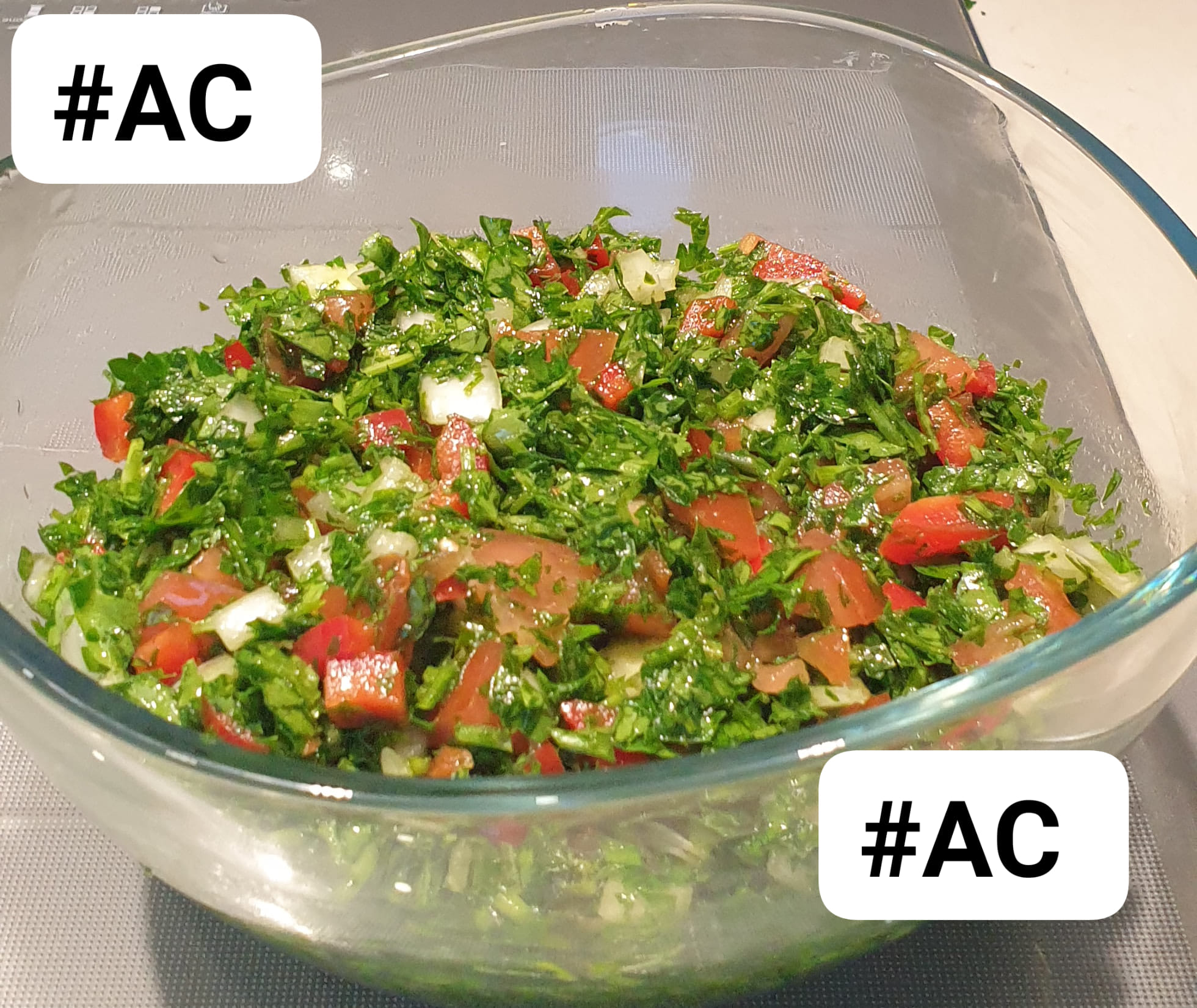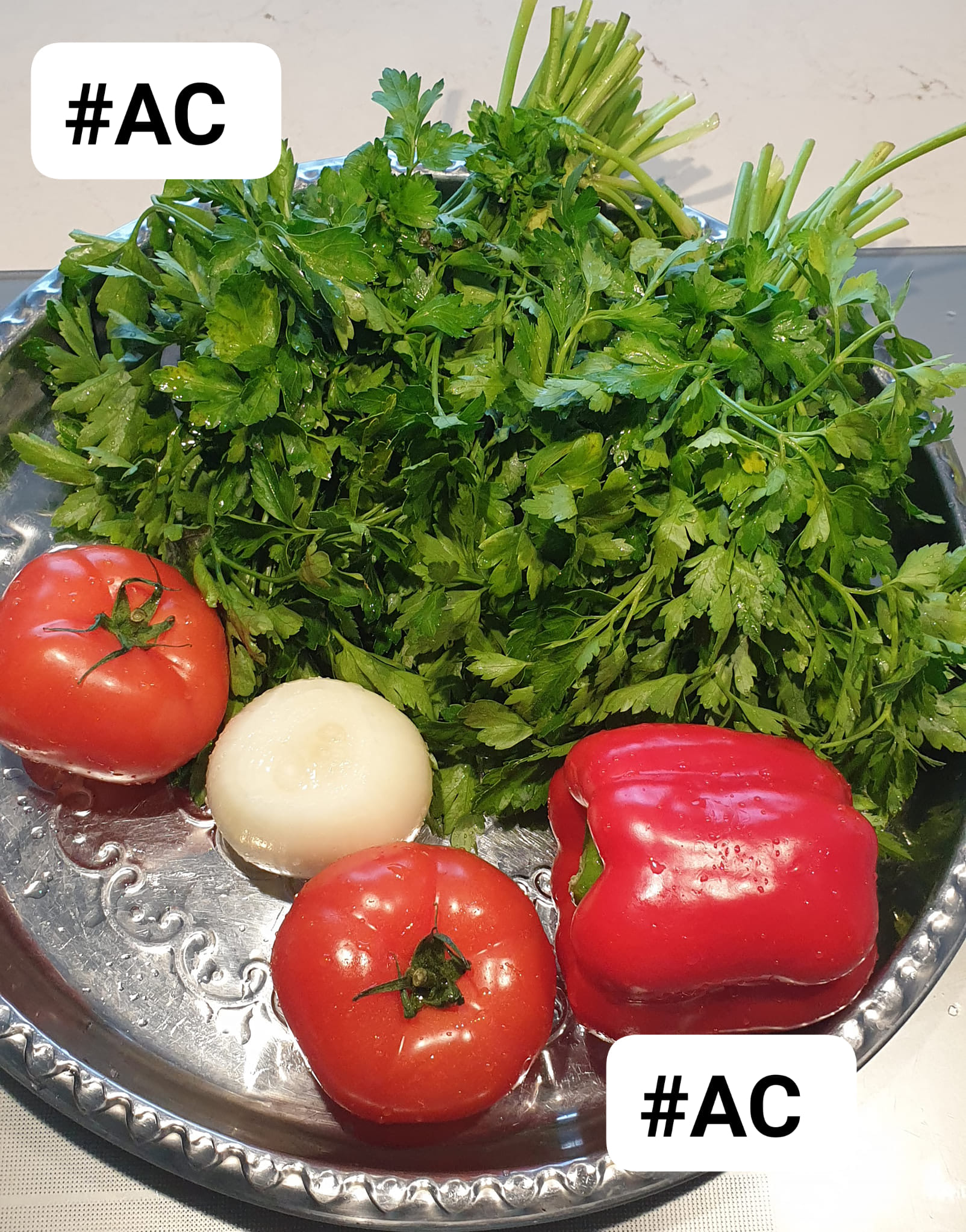 • Hachez finement le persil, les tomates, l’oignon et le poivron.​