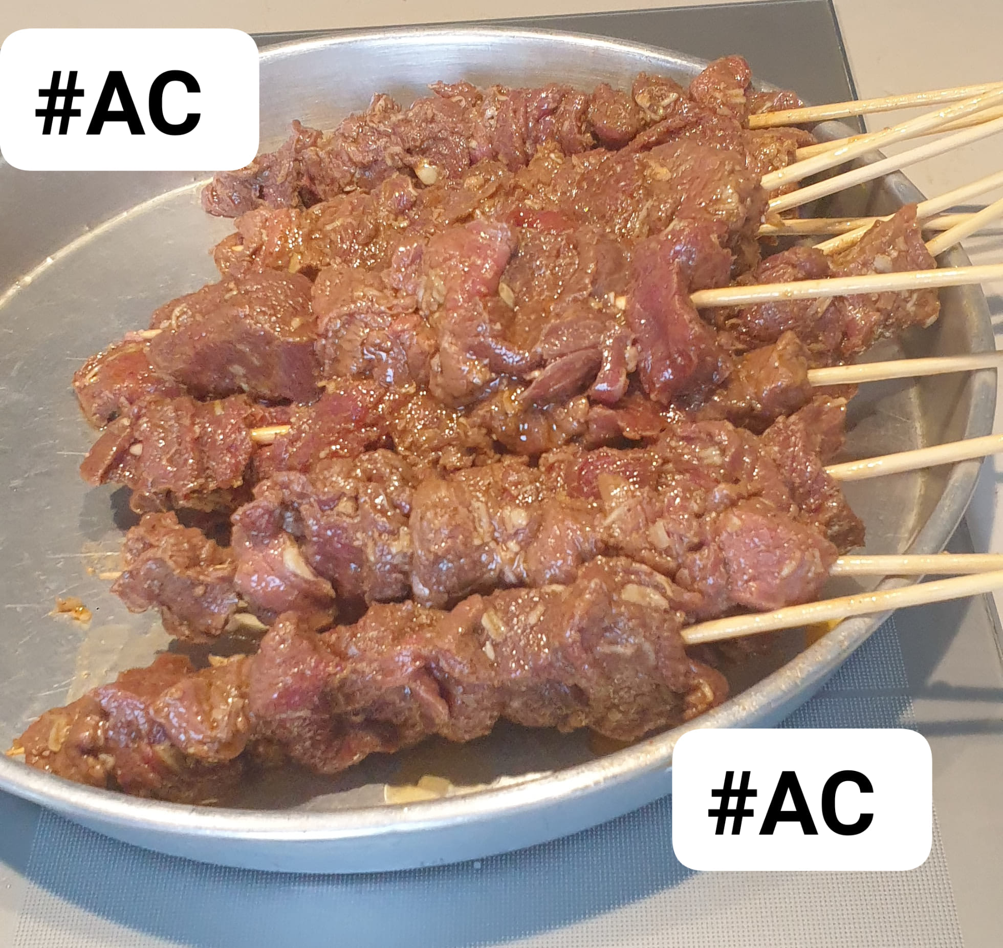 • Coupez la viande de bœuf en morceaux adaptés aux brochettes et enrobez-les uniformément de la marinade.​