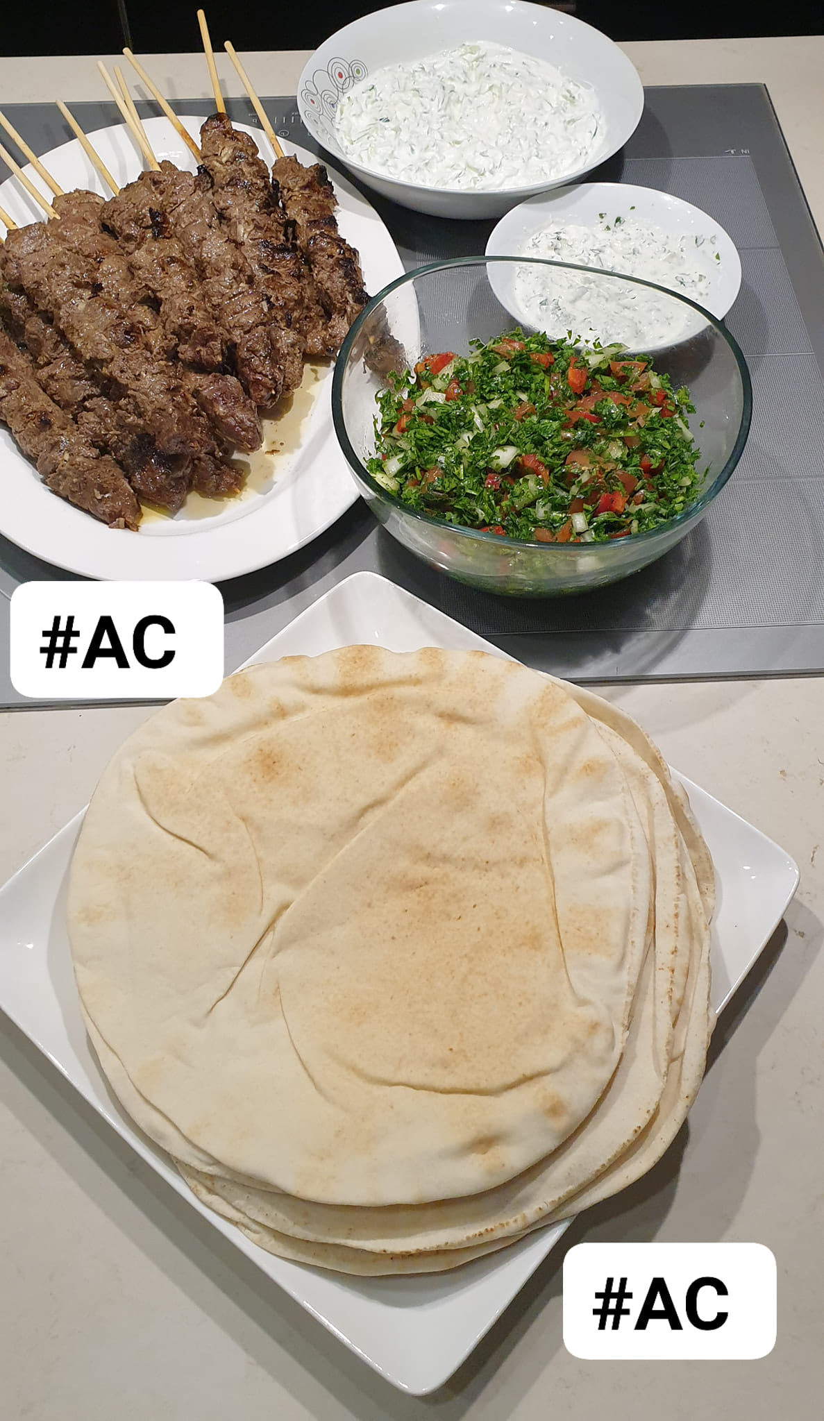 • Servez les brochettes chaudes accompagnées de la salsa de légumes, des sauces au concombre et à la menthe, et de pain libanais légèrement réchauffé.​