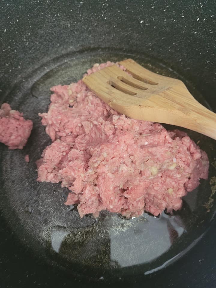 - Faites cuire en remuant jusqu’à ce que la viande libère son jus et commence à dorer.