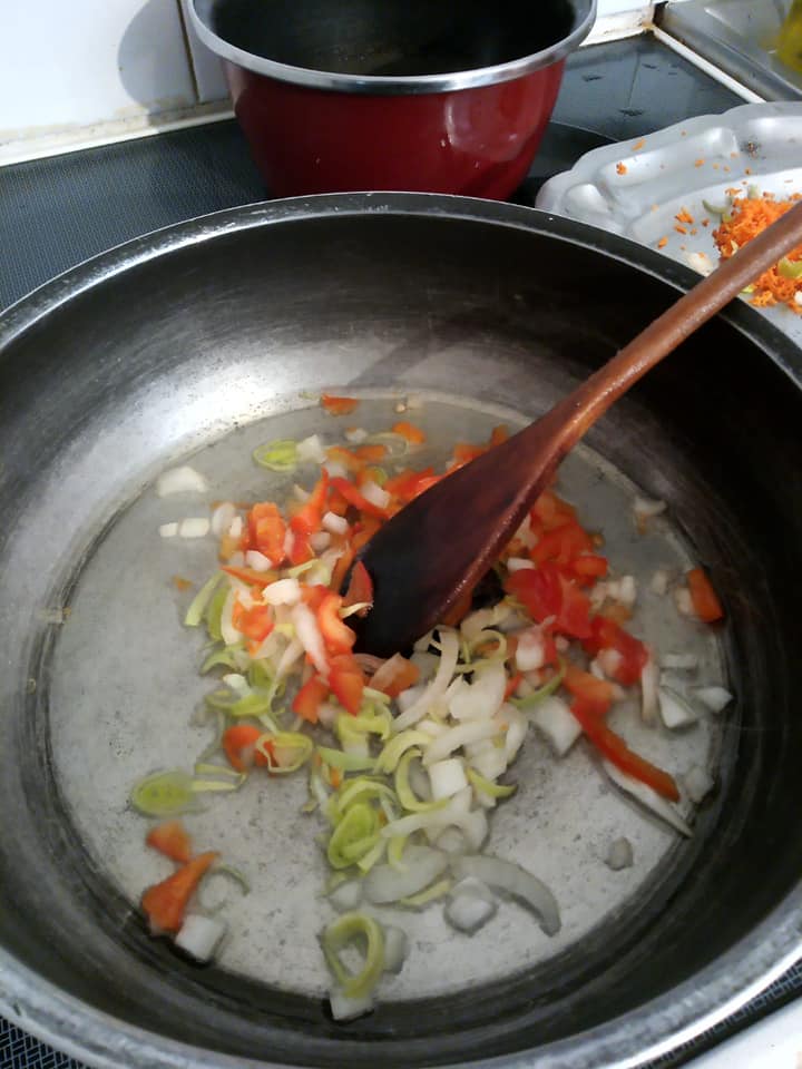 - Dans une poêle, faites revenir l’oignon et l’ail jusqu’à ce qu’ils soient translucides.