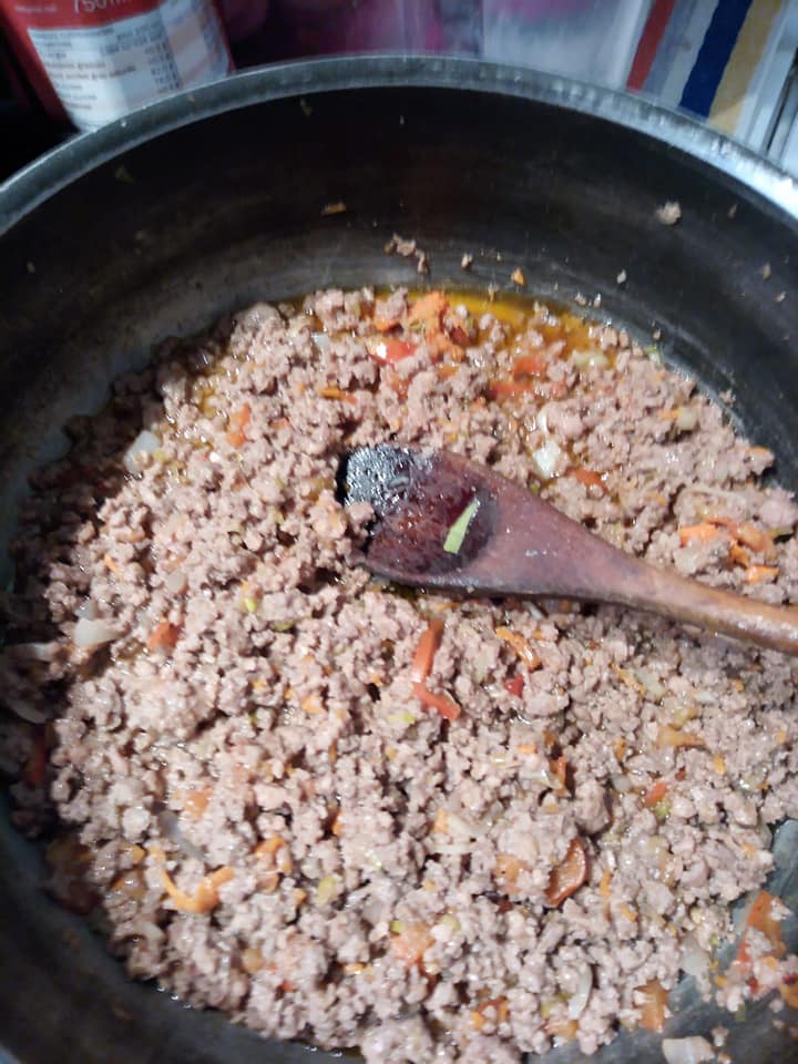 - Ajoutez la viande hachée et faites-la cuire jusqu’à ce qu’elle soit bien dorée.