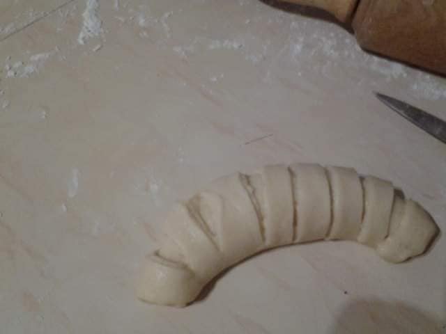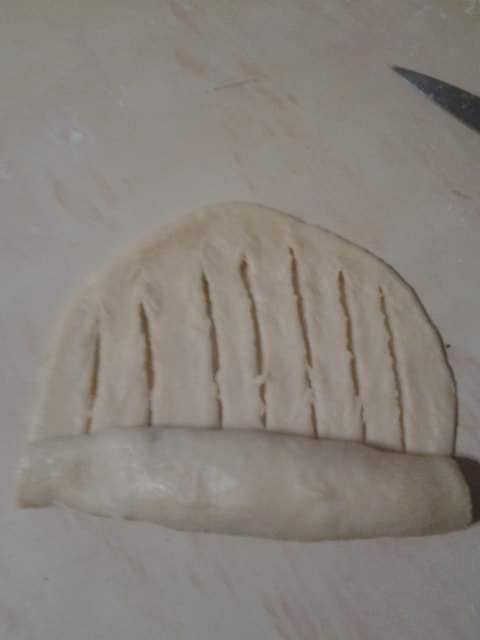 - Sur la moitié restante, réalisez des franges avec un couteau, puis rabattez-les par-dessus pour sceller le pastel.