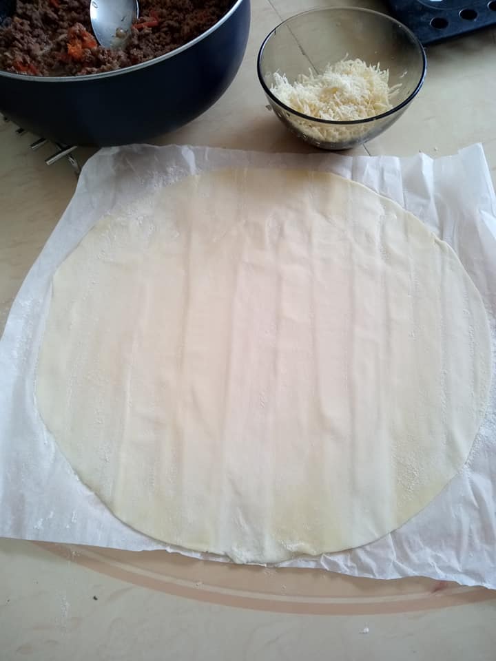 - Étalez la pâte sur un plan de travail fariné et découpez des cercles à l’aide d’un verre ou d’un emporte-pièce.